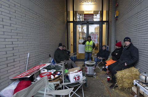 Members of the Irish Farmers Association (IFA) protest inside Bird Bia's HQ in Dublin over the EU-Mercosur Partnership Agreement and calling for the removal of the agency's chair, Larry Murrin. Picture: Sam Boal/Collins Photos