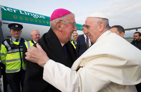 Archbishop Diarmuid Martin says farewell to Pope Francis at Dublin Airport on August 26, 2018, at the end of the pontiff's visit to Ireland for the World Meeting of Families. Picture: Maxwells