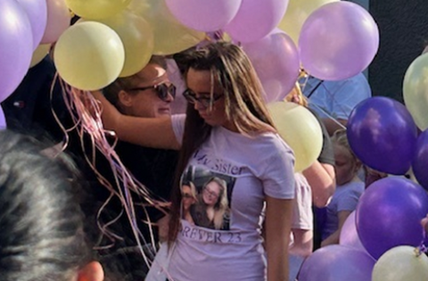 Ms Morey’s sister Jolene Morey led a countdown at the vigil before hundreds of coloured balloons were released into the sky as a selection of Ms Morey’s favourite songs were played on a loudspeaker.
