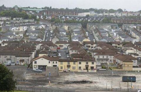 Police are investigating the placing of a number of flags and banners on a bonfire in Derry as hate crimes.