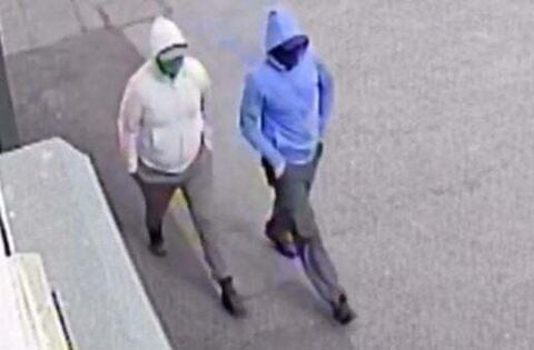 He was wearing a light grey hoodie with three distinctive orange lines down the arms, dark grey bottoms, dark footwear and gloves and had a cap on under his hoodie.