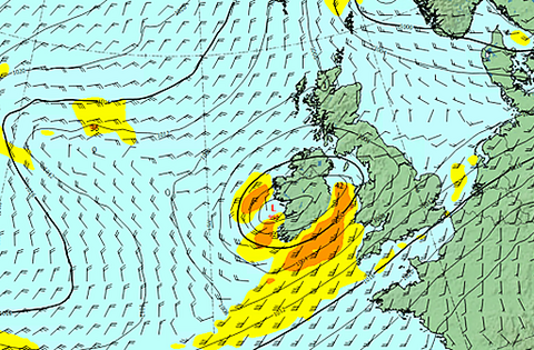 Met Éireann meteorologist Mark Bowe said there would be "significant winds to the northwest but rain will be widespread and rather heavy at times too which could lead to spot flooding."