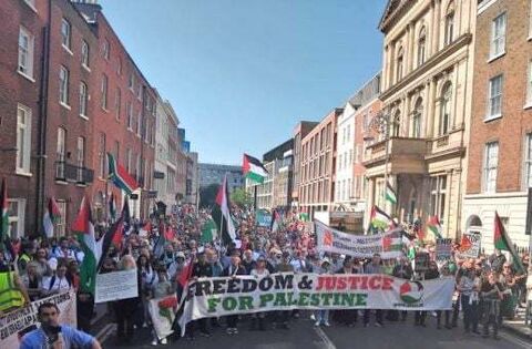 Crowds of activists made their way across the city and assembled outside the Dáil on Saturday afternoon for the rally organised by the Ireland-Palestine Solidarity Campaign (IPSC).
