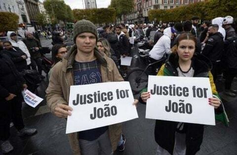 Banners urging Justice For Joao were held by participants.