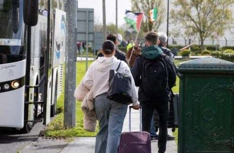Protesters gathered along both sides of the route into the airport, carrying flags and banners and chanting before moving to where Gardaí and Airport Police had gathered to monitor the event.