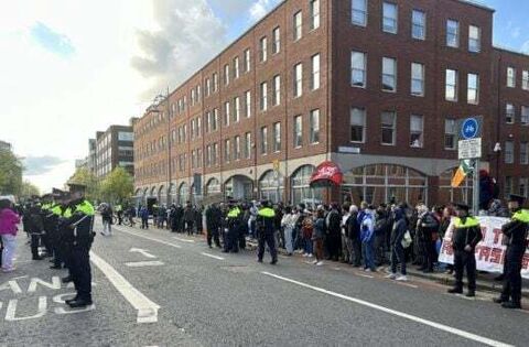 Protesters in standoff near migrant camp in Dublin