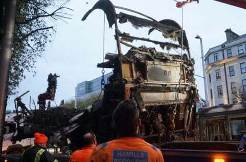 A clean-up operation was under way on Friday, with burned-out Luas tram carriages lifted off the track by cranes and broken glass and missiles swept off the streets.