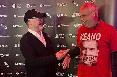 Also present at the screening was Co Down man Alistair Evans, who wore a 23-year-old t-shirt emblazoned with Roy Keane’s face and the words: “KEANO INNOCENT”.