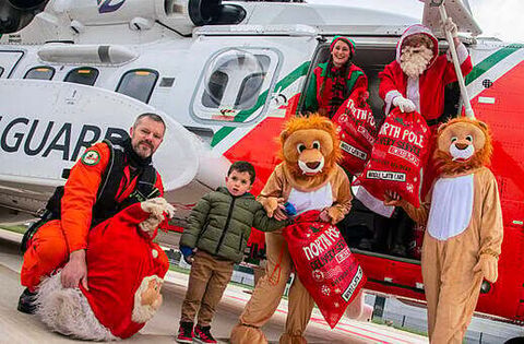 Santa, who was giving his reindeer a pre-Christmas rest, made quite the entrance by instead arriving on a Coast Guard Helicopter.
