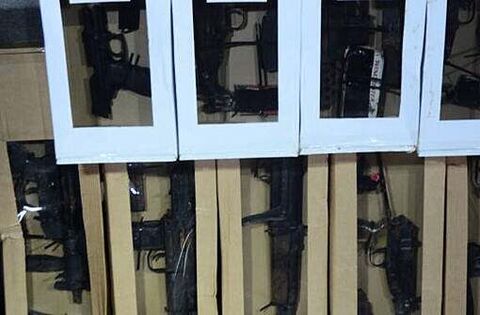 They contained seven machine guns, three automatic handguns, an assault rifle and ammunition.