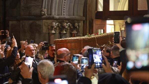 Earlier in Dublin, MacGowan’s remains were carried in a glass horse-drawn carriage with his coffin adorned with an Irish tricolour flag and featuring a black-and-white photograph of the singer in his youth.