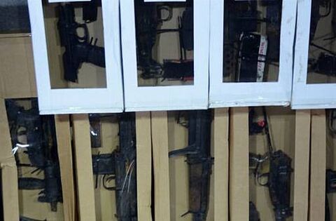 They contained seven machine guns, three automatic hand guns, an assault rifle and ammunition.