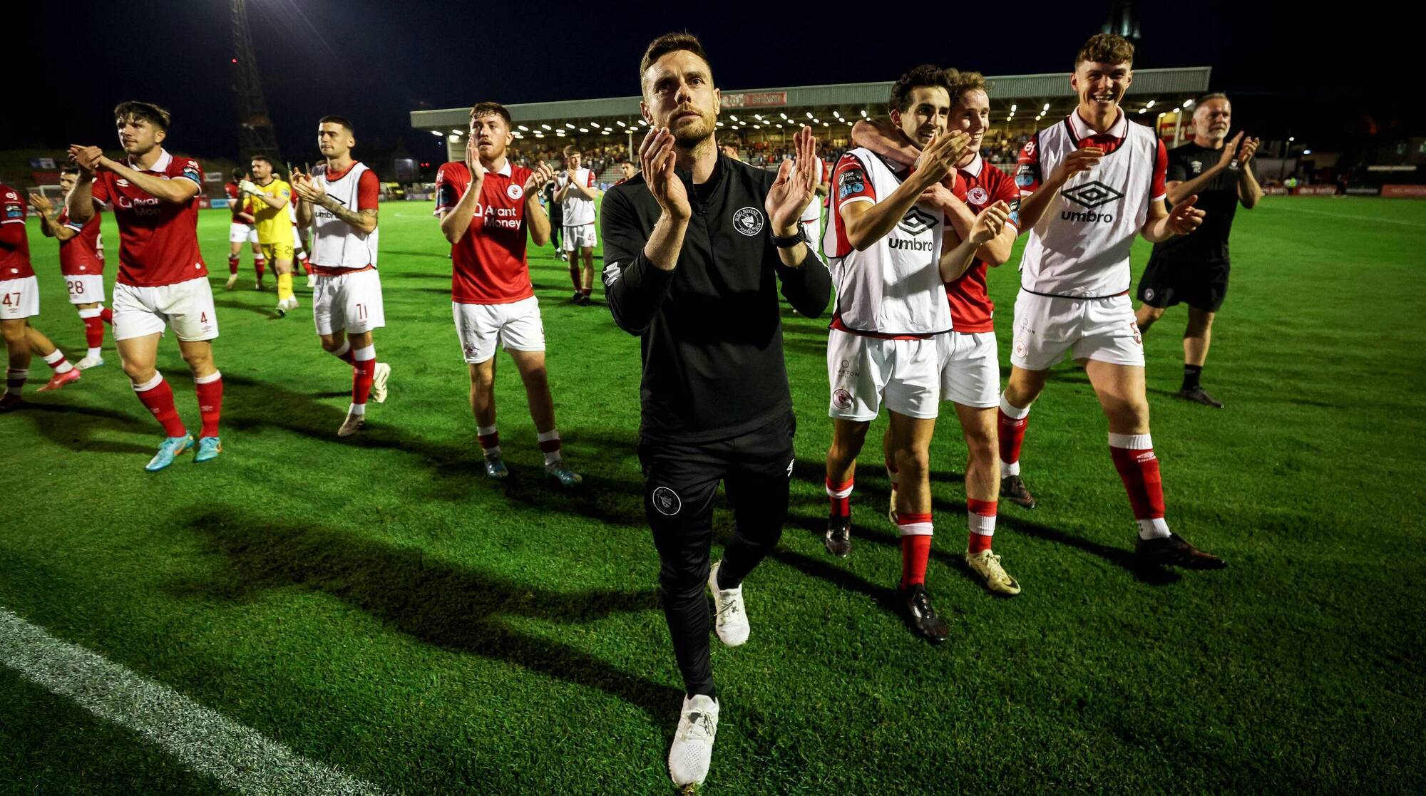 Sligo Rovers manager John Russell celebrates after the game. Picture: INPHO/Ryan Byrne