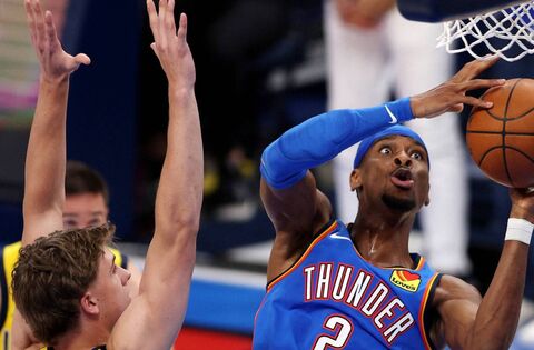 Shai Gilgeous-Alexander of the Oklahoma City Thunder attempts a layup against the Indiana Pacers during the fourth quarter in Game Two of the 2025 NBA Finals at Paycom Center. Picture: William Purnell/Getty Images)