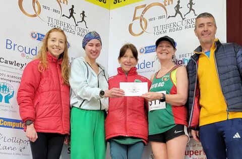 Mayo AC's women's team who finished as the first club at the St Patrick's Day 10k in Tubbercurry. Pictured from left are Martina O’Connor, Dee Corcoran, Angela O’Connor, Monica Joyce and Paul Walsh of South Sligo AC.