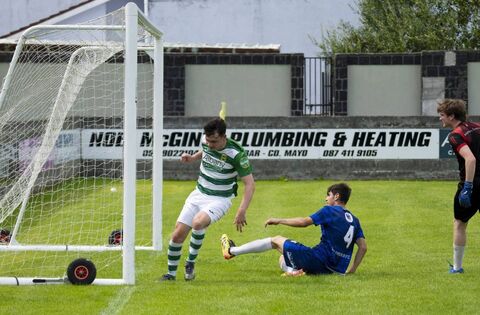 Ballyhaunis were without regular goalkeeper Spajic and relied on 16-year-old Jason Powers, playing out of position in an emergency role. With Celtic in complete control, Powers was replaced at the break by Adam Noone, who started the, match at centre forward. Noone, a reluctant goalkeeper, made several stops in the second-half as Celtic turned to more speculative efforts from range.
