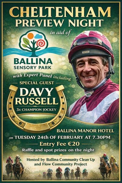 "Having Davy Russell in the park is a big coup for the park and we are very grateful for his participation. He will be joined by an expert racing panel in what is sure to be a fun-filled night. Tickets can be obtained by emailing ballinacleanup@gmail.com or by entry on the night."