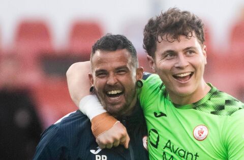 Sligo Rovers duo Edward McGinty and Richard Brush celebrate after the game. Picture: INPHO/Evan Logan