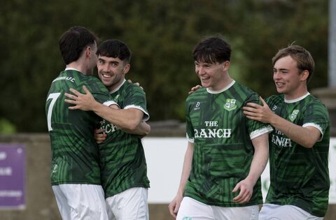 Twelve minutes in Claremorris went in front when player of the match, Liam Kearns, broke on the wing and sent a perfect cross, for Liam McCormack to head home, unmarked, at the back post. Two minutes later Jason Murphy’s fine strike hit the Ballyhaunis upright. Ballyhaunis settled and Garcia came close, and the lively Isaac Owusu showed his pace when he broke on the wing, but Emanuel Fasanmi couldn’t connect with the cross.