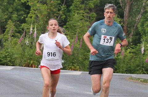 Freya Renton of Westport AC in a race with Michael Rocke of Mayo AC. Freya won the ladies race and was fifth overall, while Michael was fourth overall.