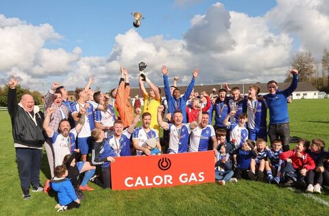 Ballina Town in high spirits after defeating Westport United in the Calor Super Cup Final in Solar 21 Park, Castlebar. Picture: Michael Donnelly
