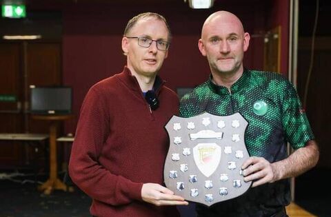 Kieran Gallagher (Mayo Pool Association) with men's winners Dave Sweeney.