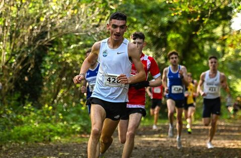 Keelan Kilrehill of Ballina's Moy Valley AC on his way to winning the senior men's 8000m during the Autumn Open International Cross Country Festival at Abbotstown in Dublin. Pictures: Sam Barnes/Sportsfile