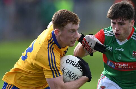 Knockmore’s Aidan Orme (left) kicked 0-5 in their win over Belmullet last Saturday. Picture: David Farrell Photography