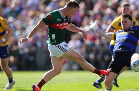 Ryan O’Donoghue scores Mayo's goal in their 10 points loss to Roscommon in the Connacht SFC semi-final last Sunday. Picture: INPHO/Tom O’Hanlon