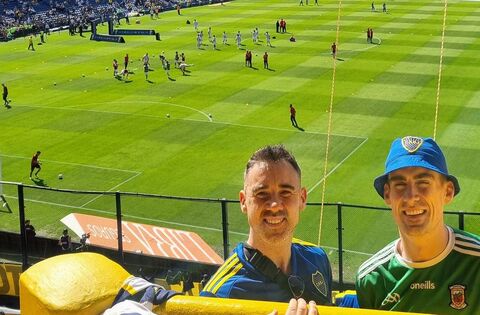 John Macken from Claremorris and Western People columnist Aonghus Ó Maicín from Ballina at La Bombonera, the home ground of Boca Juniors.