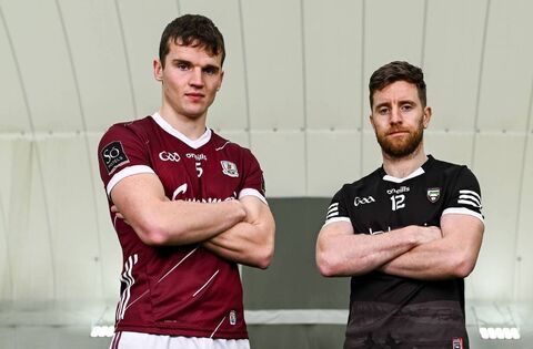 John Daly of Galway and Keelan Cawley of Sligo at last month's launch of the 2024 Connacht GAA Football Championship, which took place at the Connacht GAA AirDome in Bekan. The two counties meet in the next Saturday's provincial semi-final. Picture: Piaras Ó Mídheach/Sportsfile