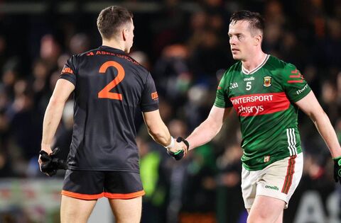 Stephen Coen of Mayo and Armagh's Tomas McCormack shake hands after the Allianz Football League Division One draw last February. Both teams have recently lost provincial finals in the space of six days but Armagh showed last year what can be achieved after such a disappointment. Picture INPHO/Nick Elliott