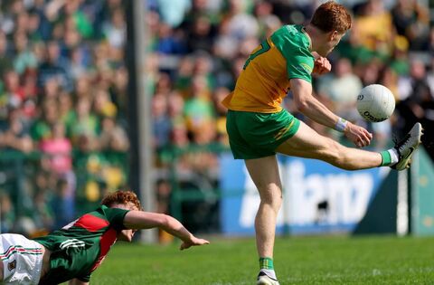 Another Donegal defender, Eoghan Bán Gallagher, also had a goal chance but Mayo’s real issue was chances of their own not taken, especially with the wind at their backs. After Ciarán Moore’s black card, Mayo were never able to make much headway and Donegal’s three points lead at the break flattered the Green and Red, who had Ryan O’Donoghue, Matthew Ruane and Jordan Flynn fail with a number of long-range attempts for points.