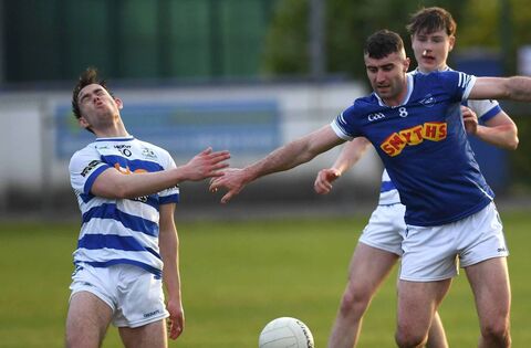 Breaffy’s Aidan Cunningham feels the pain after contact with Claremorris midfielder Matthew Macken during Saturday evening's Mayo SFL Division 1 encounter. Pictures: David Farrell Photography