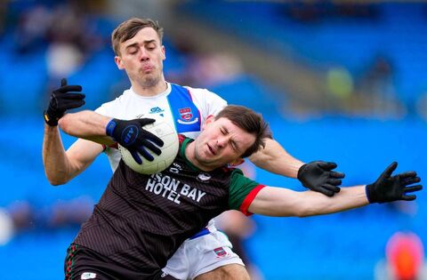 Evan Regan’s backdoor cut for his overhead goal and Ben Thornton drifting into a pocket of space for goal number three illustrated that Ballina had identified and exploited a tendency of the St Brigid’s defence to focus on the opposition player a bit much and not enough on their shape and defending the real red zones, while Conor Carroll – who won player of the match in the Roscommon senior final replay and wasn’t far off the same in the drawn game – wasn’t allowed to just run the show with his laser-like kickouts.