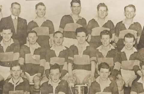 The Ballinrobe team that won the 1958 Mayo Junior Football Championship with the Jennings brothers Willie (front row, second from left) and Tony (middle row, third from left). Their grandchildren recorded a remarkable double last Friday.