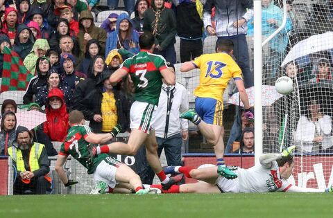 Ciaráin Murtagh scores a goal for Roscommon against Mayo in the 2017 All-Ireland SFC quarter-final in Croke Park. Picture: INPHO/Oisin Keniry