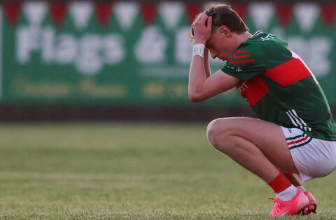Mayo's Kobe McDonald is alone with his thoughts after the final whistle in Tuam Stadium last Wednesday. Picture: INPHO/Tom O’Hanlon