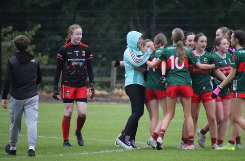 Mayo players celebrate at the full-time whistle following their semi-final win against Kildare. The Green and Red are seeking to win a first All-Ireland U16 'A' title since 1976.