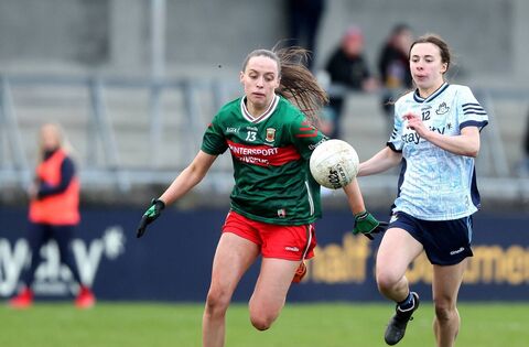Mayo's Maria Cannon and Sophie McIntyre of Dublin. Mandatory Credit ©INPHO/Bryan Keane
