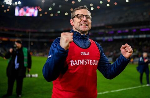 19 January 2025; Cuala manager Austin O'Malley celebrates after the AIB GAA Football All-Ireland Senior Club Championship final match between Cuala and Errigal Ciarán at Croke Park in Dublin. Photo by Ben McShane/Sportsfile