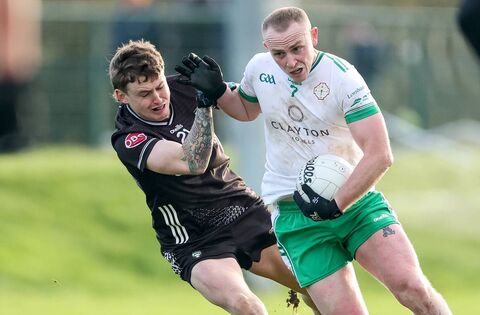 Charlestown native Conor O'Donohue, right, and his London teammates reached a magic milestone in their National Football League game away to Carlow on Saturday. Picture: INPHO/Dan Clohessy