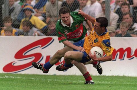 Mayo's David Nestor collides with John Whyte of Roscommon during the 2001 Connacht SFC Final at Dr Hyde Park. Picture: INPHO/Morgan Treacy