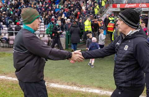Mayo manager Kevin McStay and his Galway counterpart Pádraic Joyce shake hands after last Sunday's Allianz Football League Division 1 game at Pearse Stadium in Salthill. Picture: INPHO/Morgan Treacy