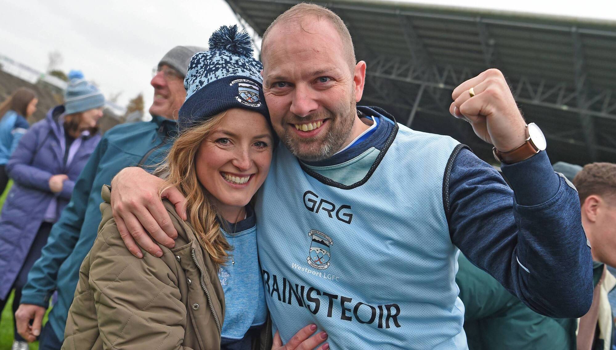 Pop Geraghty, the manager of Westport, with his wife Catherine after Sunday's win against Knockmore in MacHale Park, Castlebar. Pictures: Conor McKeown