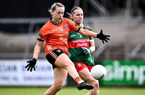 Aoife McCoy of Armagh in action against Saoirse Lally of Mayo during last year's TG4 All-Ireland Ladies Football Senior Championship quarter-final match between Armagh and Mayo at the BOX-IT Athletic Grounds in Armagh. Both are set to start in this weekend's league encounter. Picture: Piaras Ó Mídheach/Sportsfile