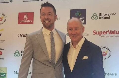 Lahardane native Gearóid Cronin, chairman of Middle East GAA, with former Dublin senior football manager Jim Gavin.