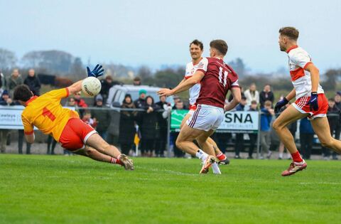 Shamrock Gaels had looked as though they had put themselves in a strong position with points from Lee Deignan and Shane Deignan, however, they suffered a big blow in the final play of the first-half when Leo Doherty flicked the ball to their net after a long ball delivered in by Mark McDaniel.