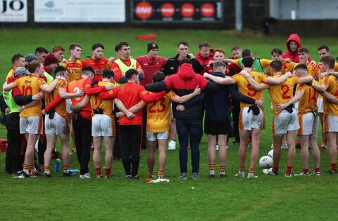 Castlebar Mitchels gather in a huddle after their win over Ballyhaunis. Picture: Michael Donnelly
