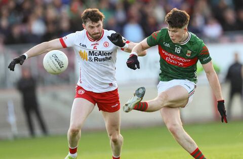 Conal Dawson, seen in championship action against Tyrone last season, is in line to make his first start in a National Football League fixture for Mayo. Picture: INPHO/James Crombie
